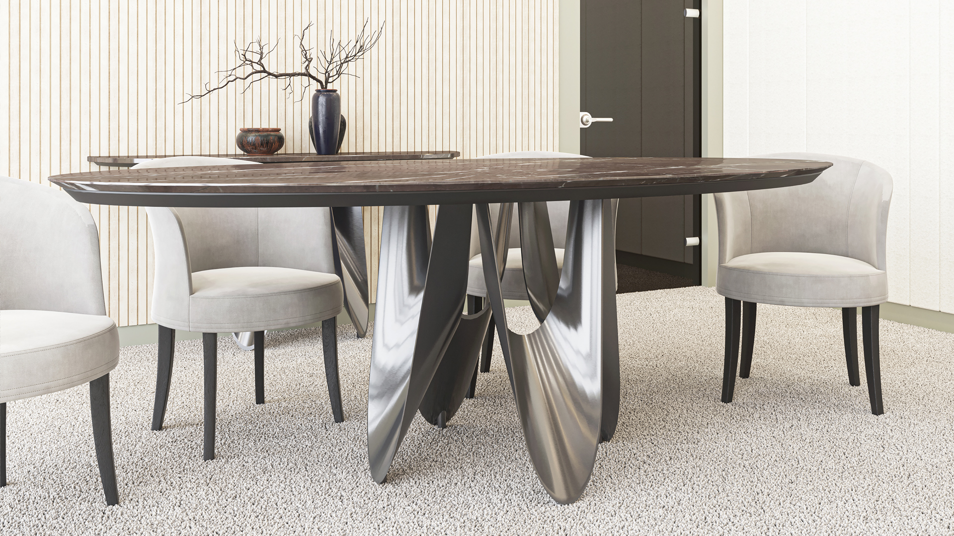 مجموعه مبلمان مدیریتی LAMBDA با ترکیب اشکال نرم طراحی شده که برای یک فضای مدیریتی مدرن بسیار زیبا و مناسب است. میز دارای یک پایه فرم دار از فولاد رنگ شده است که با تکیه گاه های منحصر بفردی رو زمین قرار گرفته و صفحه میز نیز با سنگ طبیعی بر روی آن کامل میگردد.